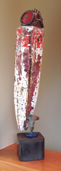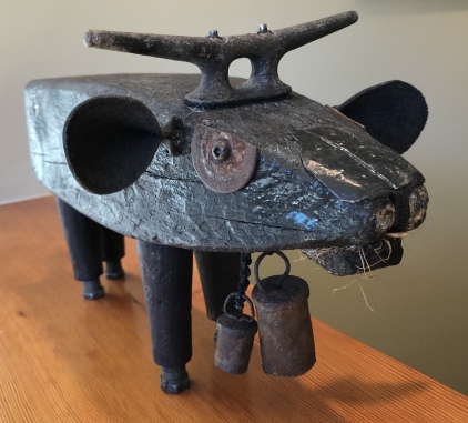 Stylistically, I'm influenced by the aesthetic and cultural tradition of fine artists and folk artists and their use of non-traditional materials. I'm drawn in by the power, spontaneity, and passion shown in these works, enriched as they are by the historical reference of the material itself. There has never been a time in my life when I haven’t been a beachcomber, daydreamer and seeker of visual inspiration. I am an impassioned collector and scavenger of wooden fishing buoys and floats, miscellaneous metal and wood fragments, and used hardware as material for my art.
